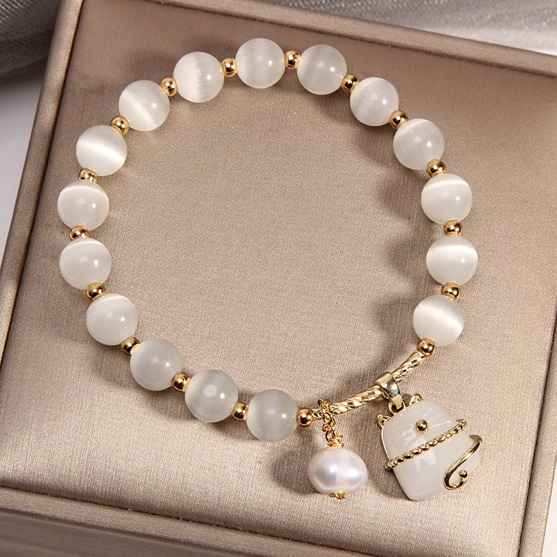 The Prosperity Dragon-Cat – White Cat’s Eye Bracelet